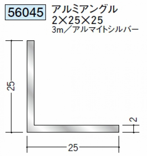 アルミアングル 2×25×25 3m シルバー