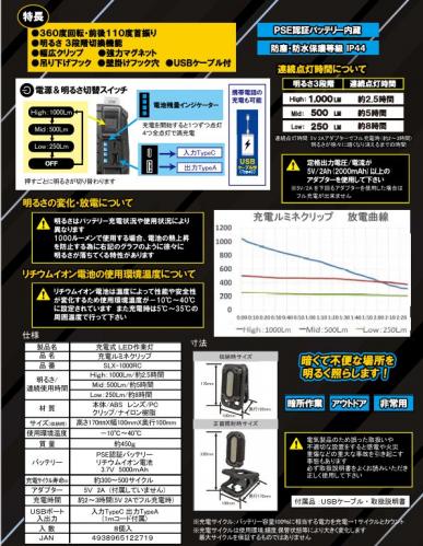| 100 mm | 170 mm | 100 mm | 約450 g | -10~40 ℃ | 約2~3 時間 |